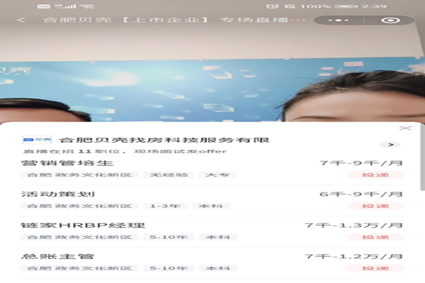 此次招聘活动以线上直播的方式进行,直播间列出了在招职位,应聘要求及相应的工资待遇。在直播过程中,贝壳找房招聘经理张老师和何老师为广大求职毕业生介绍了各个职位主要的工作内容,讲解了部分岗位应聘的更多要求,如学历条件,工作经验等,还告知了应聘面试的时间和具体地点。两位老师鼓励毕业生积极提问并耐心为大家解疑答惑,同时为毕业生提供了应聘经验和面试技巧。此次招聘活动还允许进行线上连麦面试,直接投递简历,为毕业生提供了极大便利。