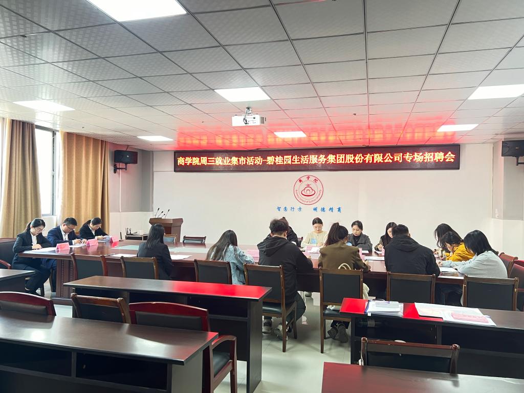 11月5日下午,碧桂园生活服务集团股份有限公司到商学院开展专场招聘面试活动,面试会在商学院实训楼B517会议室进行,历时三小时,50余名学生参加了面试。