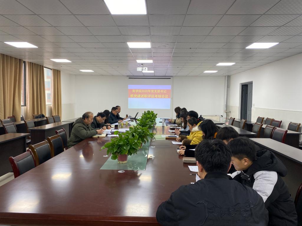 根据校党委工作部署,1月6日下午,商学院党委召开了2020年度党支部书记抓基层党建述职评议考核会。商学院党委委员、支部书记、支部委员和师生党员代表参加了此次会议,受校党委组织部委托,马克思主义学院党总支书记赵国付、组织员谷玉叶到场督导。会议由院党委书记岳尧主持。