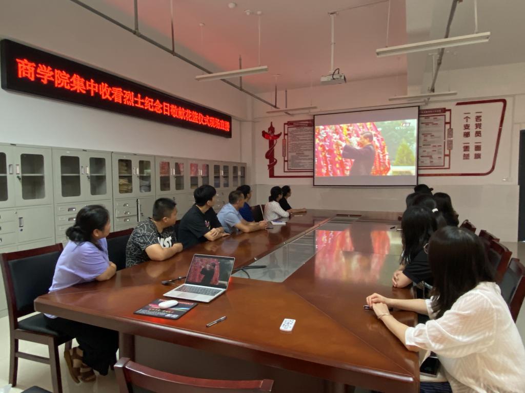 9月30日上午,商学院组织师生在实训楼B503党员活动室集中收看烈士纪念日向人民英雄敬献花篮仪式现场直播。党委副书记周亚、组织员黄凯、教职工和学生代表参加了收看直播活动。