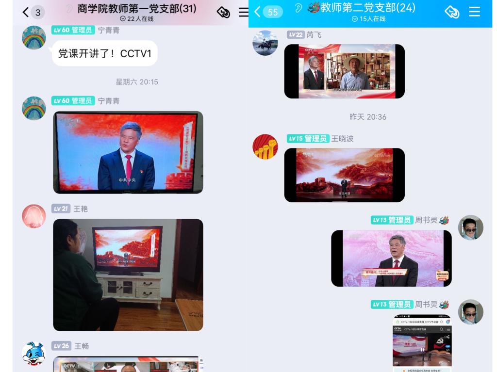 教师党支部的教师党员们通过多种方式学习收看了党课,并产生了积极反响。商学院副院长周书灵在看完党课后分享了自己的心得体会,她说,今晚观看了《党课开讲啦》第一期节目《党的光辉历程》,深有感触。何其有幸生于华夏,生于盛世,学习党的光辉历史,见证百年,除了感受长征等革命征程的不平坦,学习先辈们的奋斗精神,更是时刻提醒我们,虽不经战乱、不缺衣食,但一代人有一代人的使命。习近平总书记说青年兴则国家兴、青年强则国家强,也正如视频中提到的,作为高校教师,培养的是青年学子,祖国未来,在教学科研中,一定要给学生树立好榜样,引导学生端正入党动机、时刻提升党性修养、勇于承担时代责任,为社会主义现代化建设贡献力量,为共产主义奋斗终身。