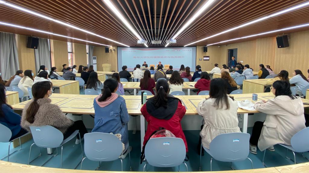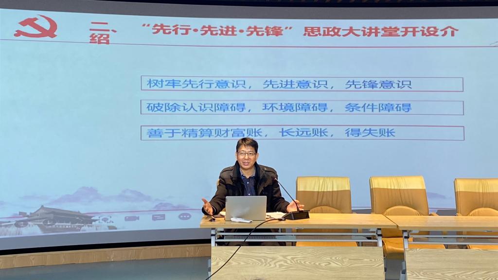 为深入开展学习党的十九届六中全会精神,进一步改进大学生思想政治教育方法,提高“三全育人”质量,增强大学生党员党性修养,商学院于11月17日在实训楼B215报告厅举办了首场“先行·先进·先锋”思政大讲堂活动。组织员黄凯做了《青年大学生的理想追求与格局提升》讲座。报告会由学院党委书记肖良主持,院党委委员、组织员张锐锐和全体在校大学生党员参加了本次活动。