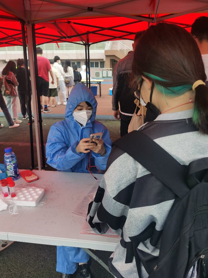 4月9日,会计学专业学生党支部组织开展“抗疫有我,党员先行”主题党日活动。支部书记孙艺文带头加入疫情防控志愿者,配合医务人员为学校需要做核酸检测的人员扫码,支部成员在现场维持秩序,为排队检查人员发放棉签,提高检测效率。