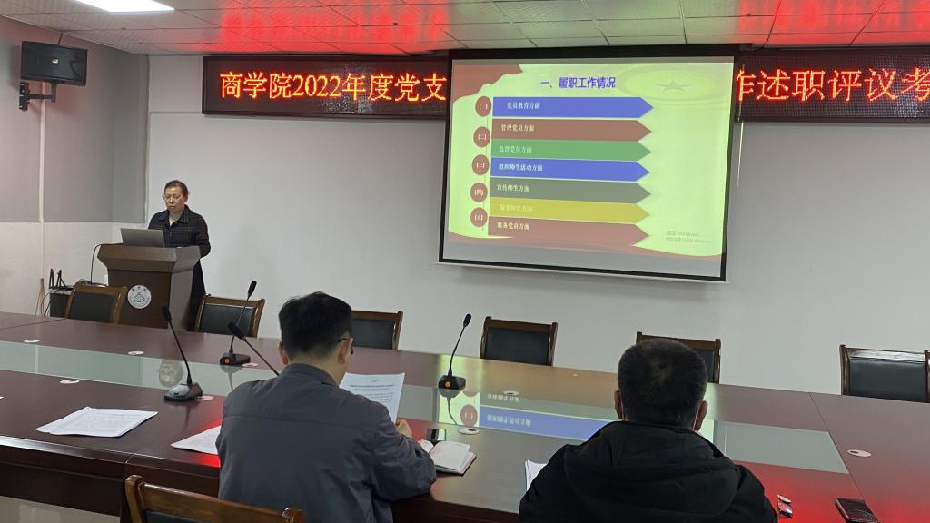 3月8日下午,商学院在实训楼B517会议室召开2022年度党支部书记抓基层党建工作述职评议考核会。商学院党委委员、党支部书记和师生党员代表参加了会议,会议由党委书记肖良主持。