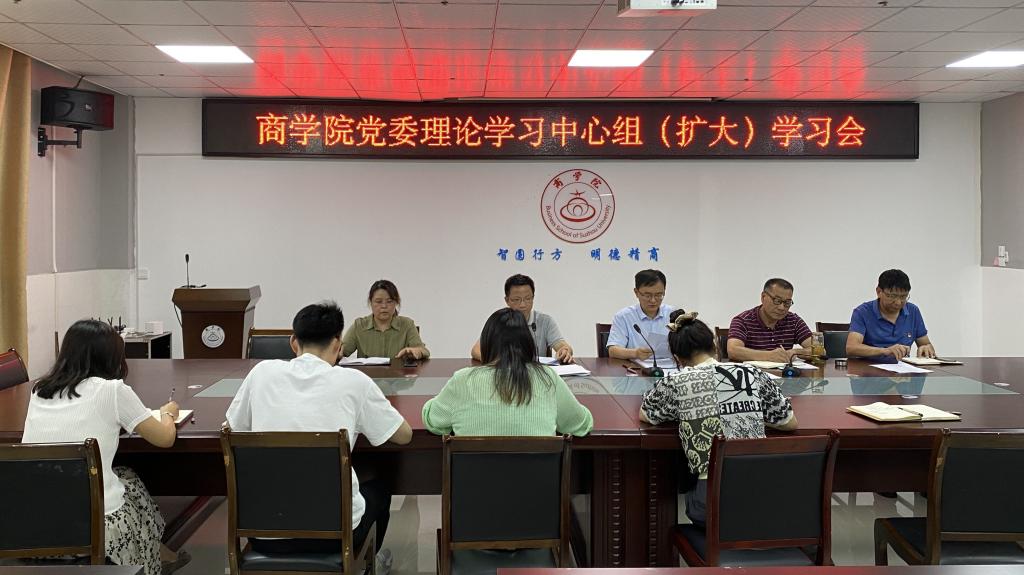 7月4日上午,商学院在实训楼B517会议室召开党委理论学习中心组(扩大)学习会。各党委委员参加会议,各支部书记列席会议。会议由党委书记肖良主持。