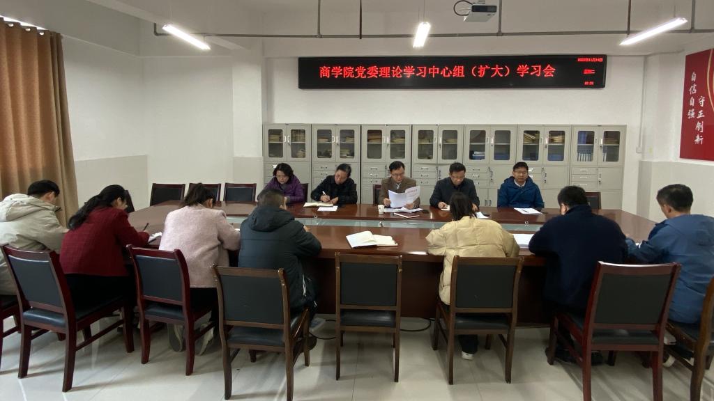 11月14日上午,商学院在实训楼B507会议室召开党委理论学习中心组(扩大)学习会。各党委委员参加会议,科级干部、党支部书记列席会议,会议由党委书记肖良主持。