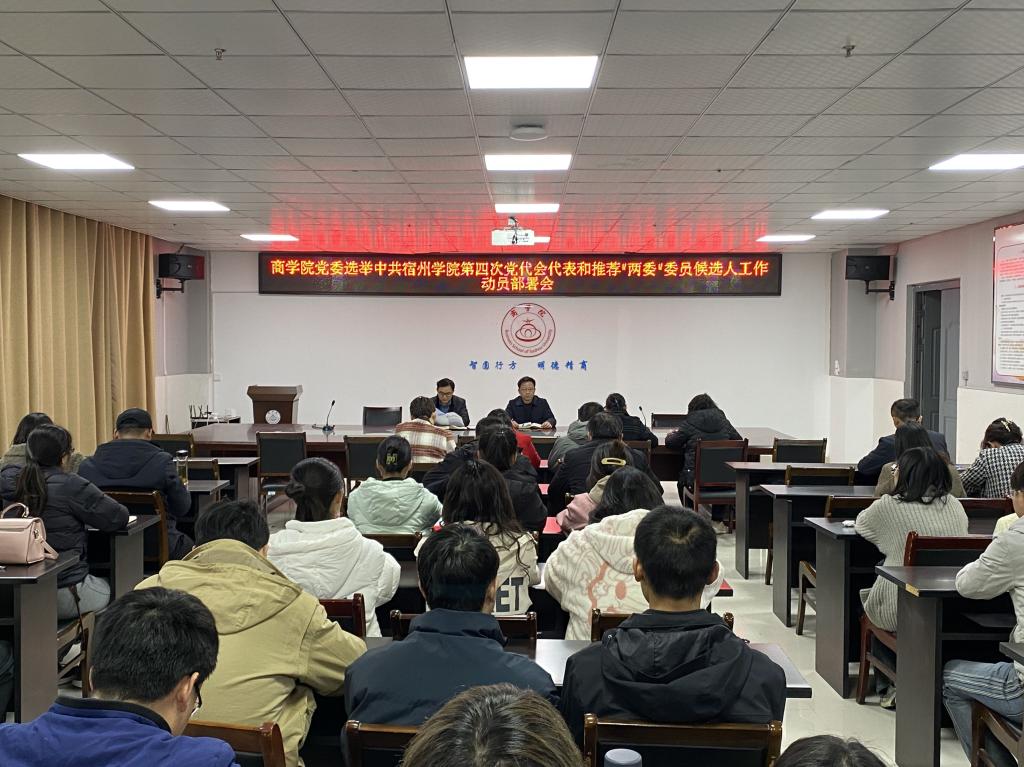 12月7日下午,商学院党委在实训楼B517会议室召开选举中共宿州学院第四次党代会代表和推荐“两委”委员候选人工作动员部署会。商学院全体正式党员参会,会议由党委书记肖良主持。