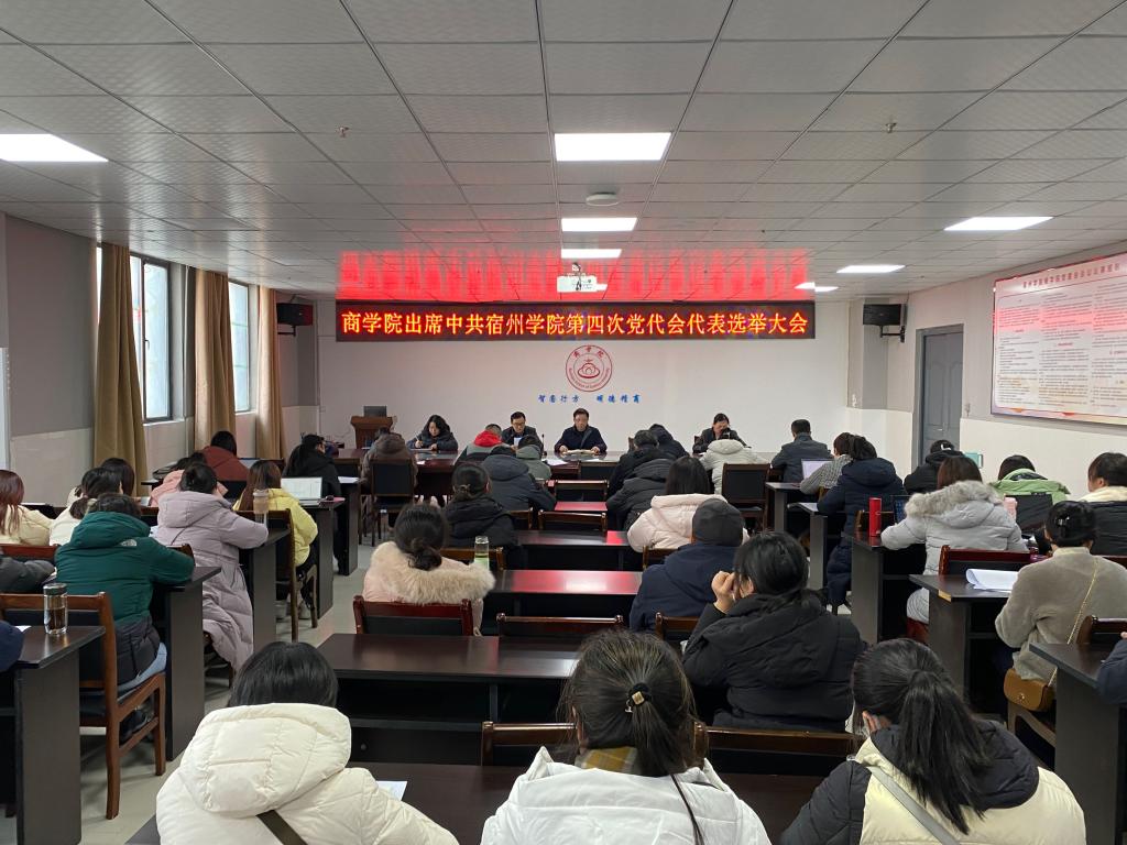 12月20日下午,商学院在实训楼B517会议室召开出席中共宿州学院第四次党代会代表选举大会。商学院应到正式党员全体参会,会议由党委书记肖良主持。