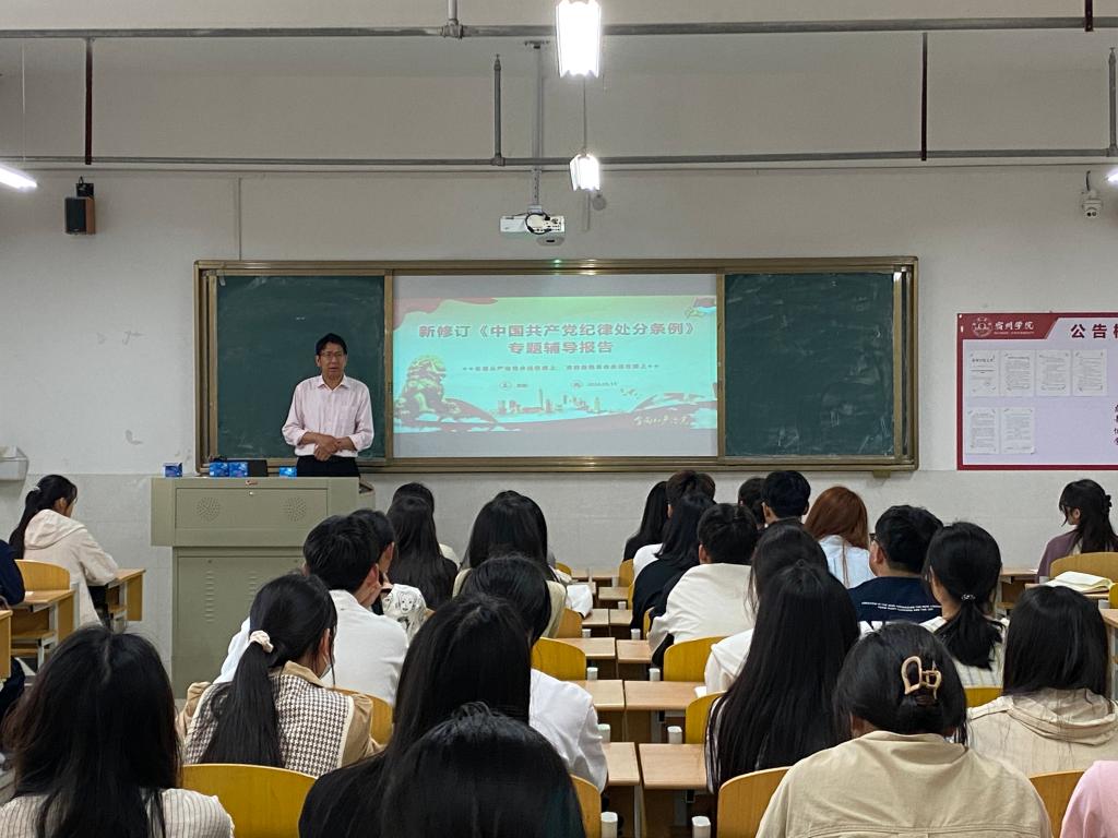 黄凯作新修订《中国共产党纪律处分条例》专题辅导报告,从深刻认识修订《条例》的重要意义,准确把握《条例》修订的主旨要义,抓好《条例》的贯彻执行、以严明的纪律推进党的自我革命等三个方面,全面系统地解读了新修订的《中国共产党纪律处分条例》。他要求学员要把学习贯彻《条例》作为重要政治任务,以严明的纪律推进党的自我革命,不断提升自身的政治素养和拒腐防变能力,切实以学纪、知纪、明纪、守纪的优良纪律作风保障高质量发展。