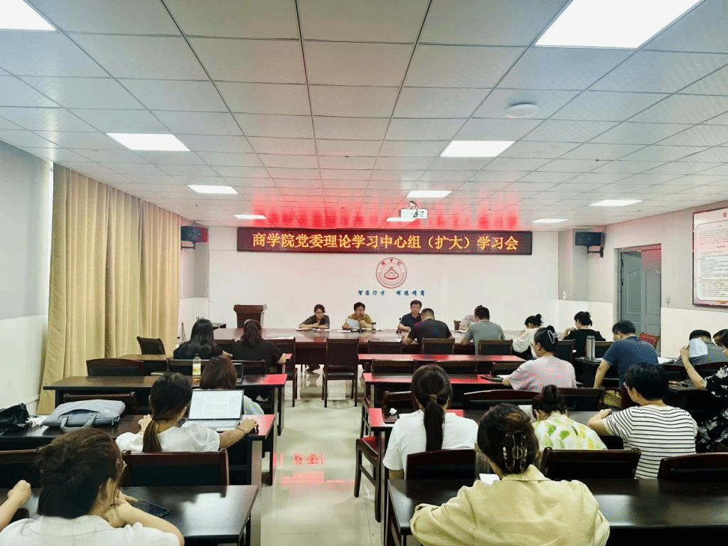 8月30日下午,商学院在实训楼B517会议室召开党委理论学习中心组(扩大)学习会。党委理论学习中心组成员、全体教职工参加了会议,党委副书记(临时负责)王淑霞主持会议。