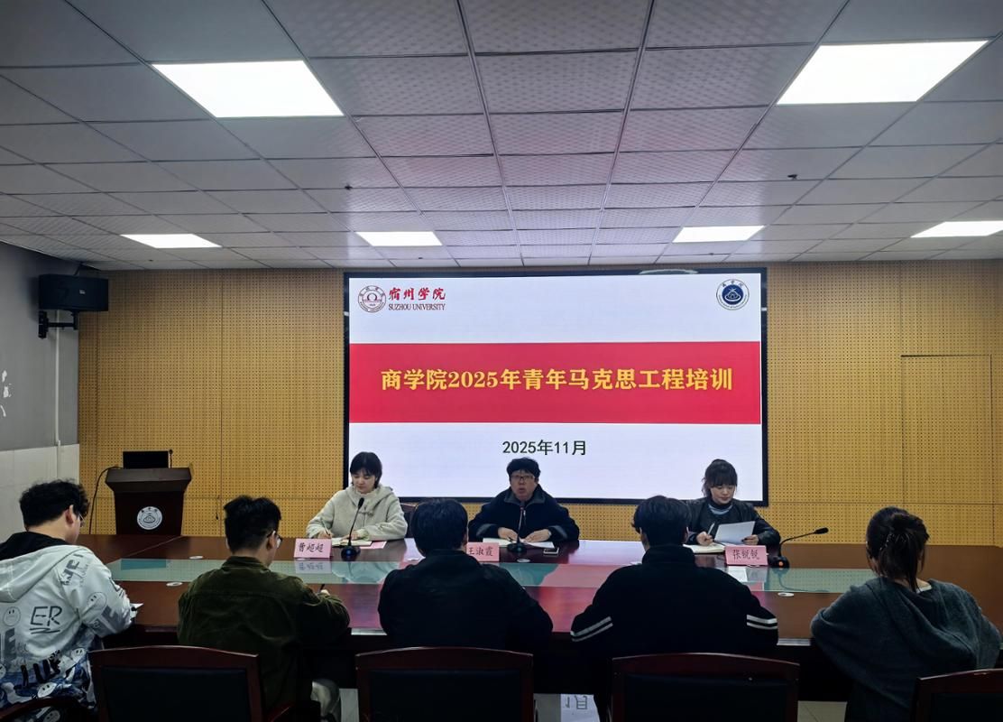为深入学习贯彻习近平新时代中国特色社会主义思想,加强青年学生干部的思想政治引领和综合素质培养,11月7日,商学院在实训楼B517会议室举行2025年青年马克思工程培训班。商学院党委书记王淑霞,党委副书记、纪委书记张锐锐,分团委书记曹超超,商学院全体学生会干部,各班级班长及团支书参加了培训。