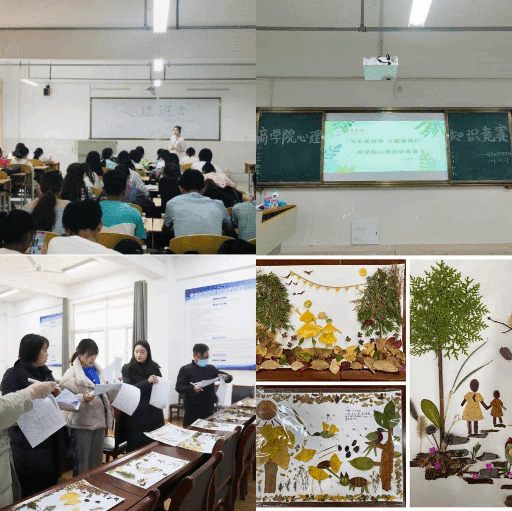 商学院始终关注学生心理健康教育,将心理健康教育纳入“绿色”安全教育重要范畴。从新生入学心理健康普查开始,及时掌握新生心理健康情况,班级开展各类心理健康主题班会,对心理特殊学生进行重点关注,及时上报,有效疏导和引导,并做好信息保密。辅导员及时识别心理健康隐患和危机,进行家校联系,做好相关工作。学院团委学生会开展各类心理健康教育主题活动,开展第十六届心理健康月系列活动之“冬天的暖心事”园艺贴画大赛,心理健康征文比赛,“与心灵相约,与健康同行”心理知识竞赛等,引导大学生正确认识心理问题,及时进行心理调适,培养理性平和,自尊自信,积极向上的良好心态。