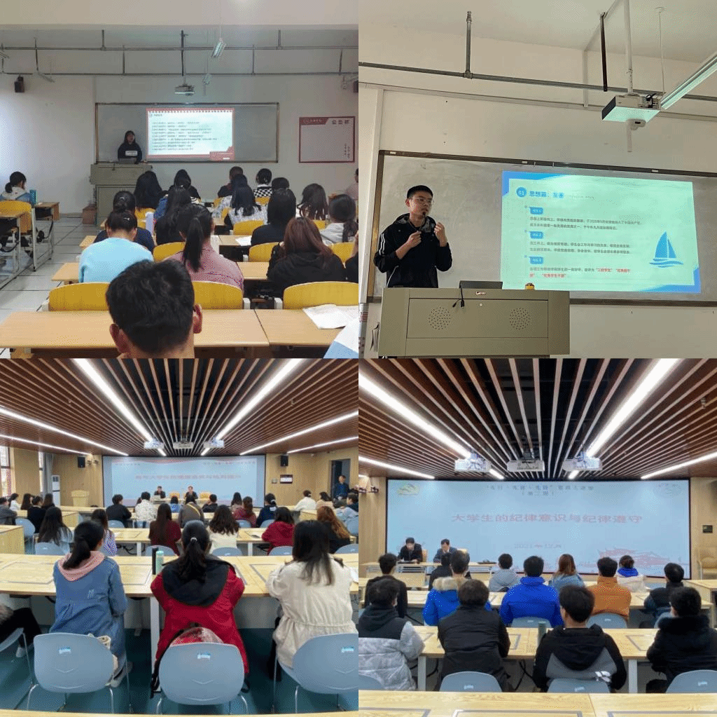 学院举办了两期“先行·先进·先锋”思政大讲堂活动。组织员黄凯做了《青年大学生的理想追求与格局提升》讲座。通过理想追求与格局提升的关系、大学生理想追求与格局发展的现状、习近平总书记对青年大学生的成长寄语以及在学习十九届六中全会精神中汲取成长的力量等主题宣讲,引导大学生坚定理想信念,培育高尚品格,勇于创新创造,矢志艰苦奋斗。辅导员王艳,孙茂顺等做了“大学生的纪律意识与纪律遵守”主题演讲,要求大学生扣好人生“规矩意识”、“纪律意识”的第一颗扣子,做到自重、自省、自警、自励。