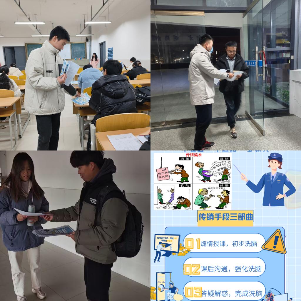 活动开展以来,商学院组建校园反传销宣传志愿者队伍,开展宣传志愿服务活动,在课间和课后进行反传销知识进学院、进宿舍。商学院大学生宣讲团将防范和打击传销结合安全教育作为宣讲内容,走进大一新生班级进行主题宣讲,让同学们自觉知法、懂法、守法、增强自我防范意识。