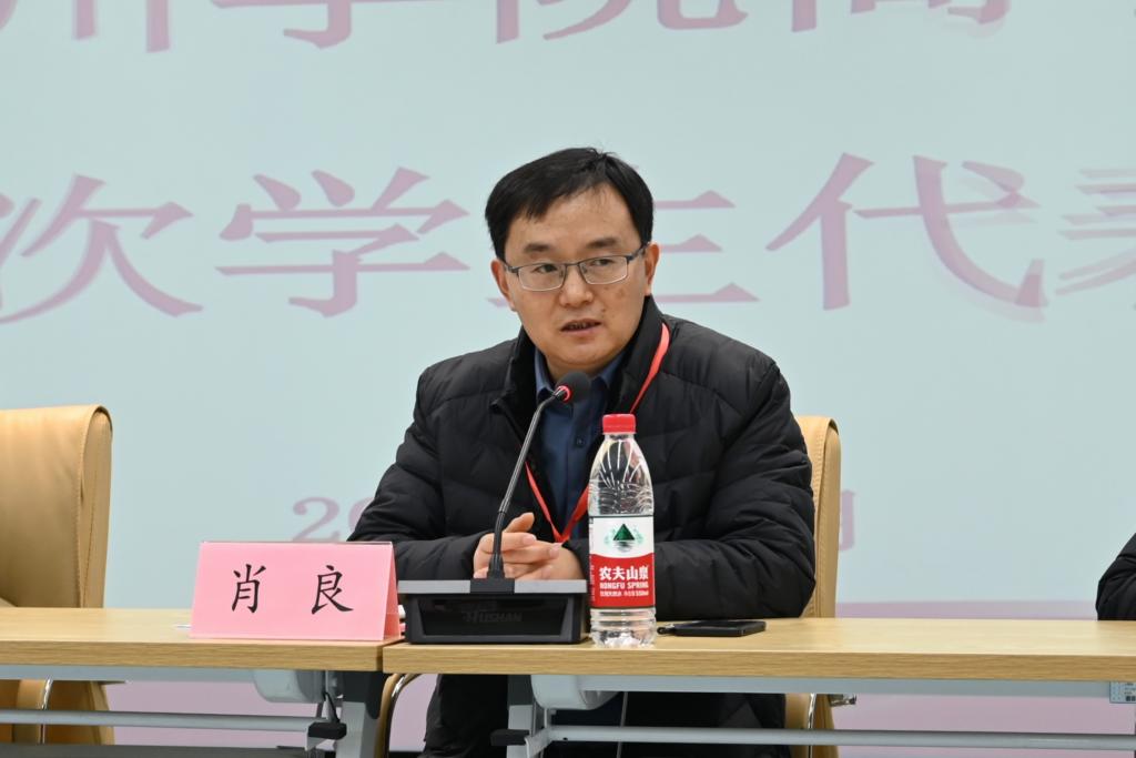 会议在雄伟庄严的国歌声中隆重开幕。随后,肖良致开幕词。他首先对商学院过去一年的学生工作给予充分肯定,并表示学生干部要充分发挥代表作用和示范作用,在学习习近平新时代中国特色社会主义思想和党的二十大精神方面要积极主动,先学一步,要注重思想引领和辐射带动,要积极打造大学生“自我服务、自我管理、自我监督”工作平台。党委副书记、院长刘红军从学科专业建设、师资力量、科研成果等方面介绍了学院发展现状,并寄语同学们要积极向上,奋发图强,共同绘制商学院发展的宏伟蓝图。