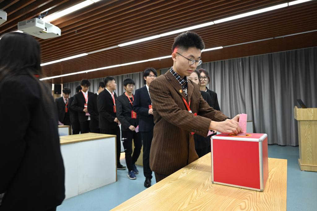 汇报结束后,学生会代表团、班级代表团、社团代表团到各分会场进行分组讨论并进行提案准备工作。随后,本着公开、公平、公正的原则,经过选举产生了新一届商学院学生会主席团成员、商学院学生会委员会委员以及宿州学院第五次学生代表大会代表人选。最后,大会在中国共产主义青年团团歌《光荣啊,中国共青团》中圆满落幕。