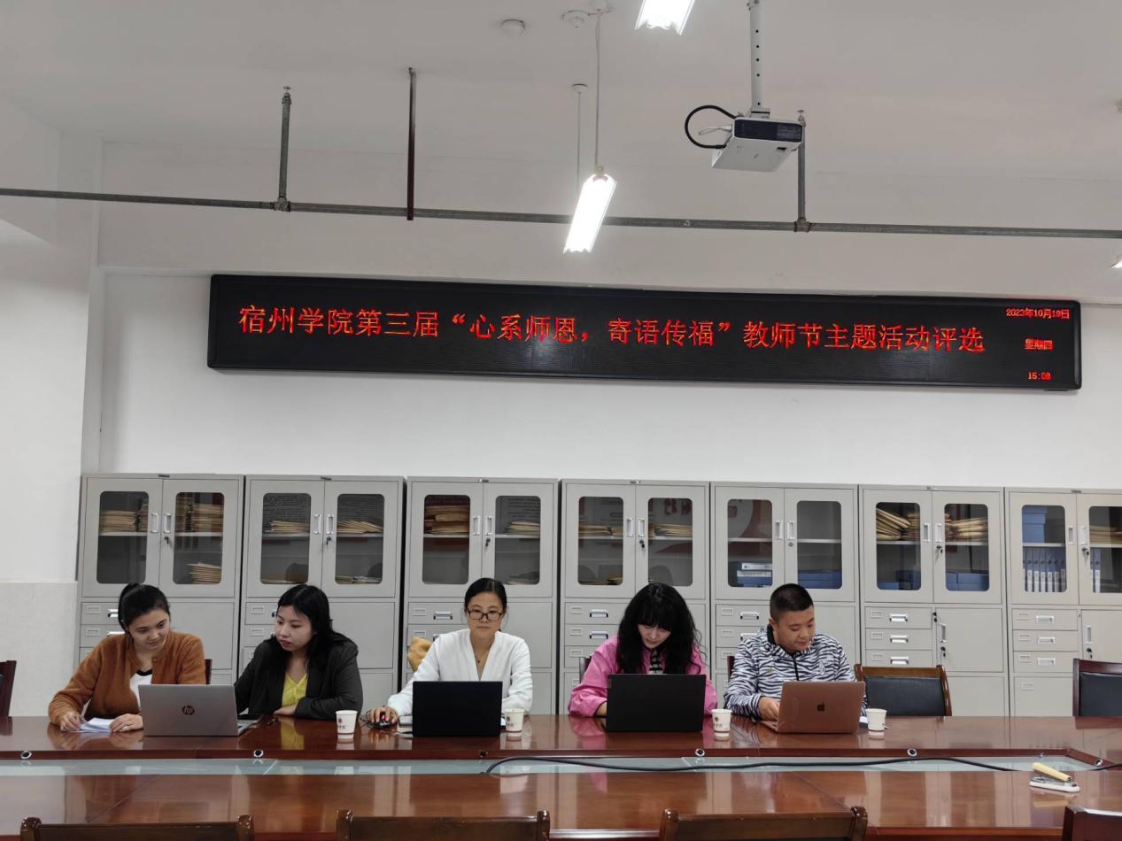10月9日下午,第二届"心系师恩、寄语传福"主题活动评选在商学院实训楼B507开展。活动邀请党委学生工作部、美术与设计学院、文学与传媒学院、商学院老师担任评审,按照不同的作品形式,根据作品内容、作品设计、作品创新方面进行评选,最终评选优秀获奖作品。同时根据各学院参与度和作品质量评选出优秀组织奖:外国语学院、生物与食品工程学院、商学院、机械与电子工程学院、数学与统计学院。