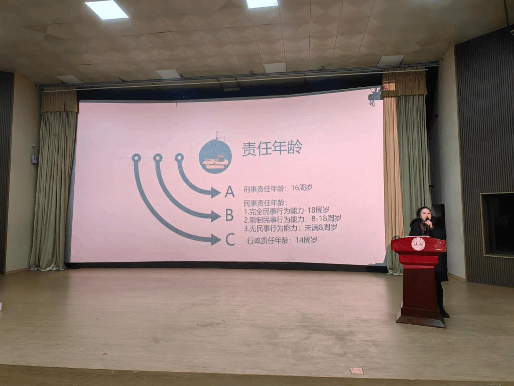 为了深入学习贯彻党的二十大精神和习近平法治思想,引导我院学子树立法治观念,强化法律意识,进一步将“普法教育”融入“三全育人”全过程,2023年12月29日,由共青团宿州学院委员会主办,商学院分团委承办的青春思政课——“青春有你 与法同行”在大学生活动中心开讲。各学院学生代表参加活动。