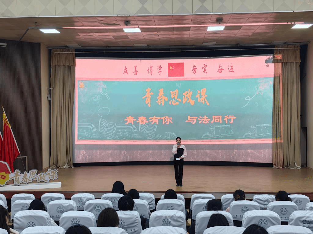 活动在歌曲《梦想课堂》中拉开序幕。整场课程以“思政+普法”的形式开展,分为“青春普法篇”、“法润校园篇”、“与法同行篇”三个环节,通过情景剧、短视频、普法宣讲、合唱等环节,为同学们带来了一场生动而深刻的法律学习和体验。