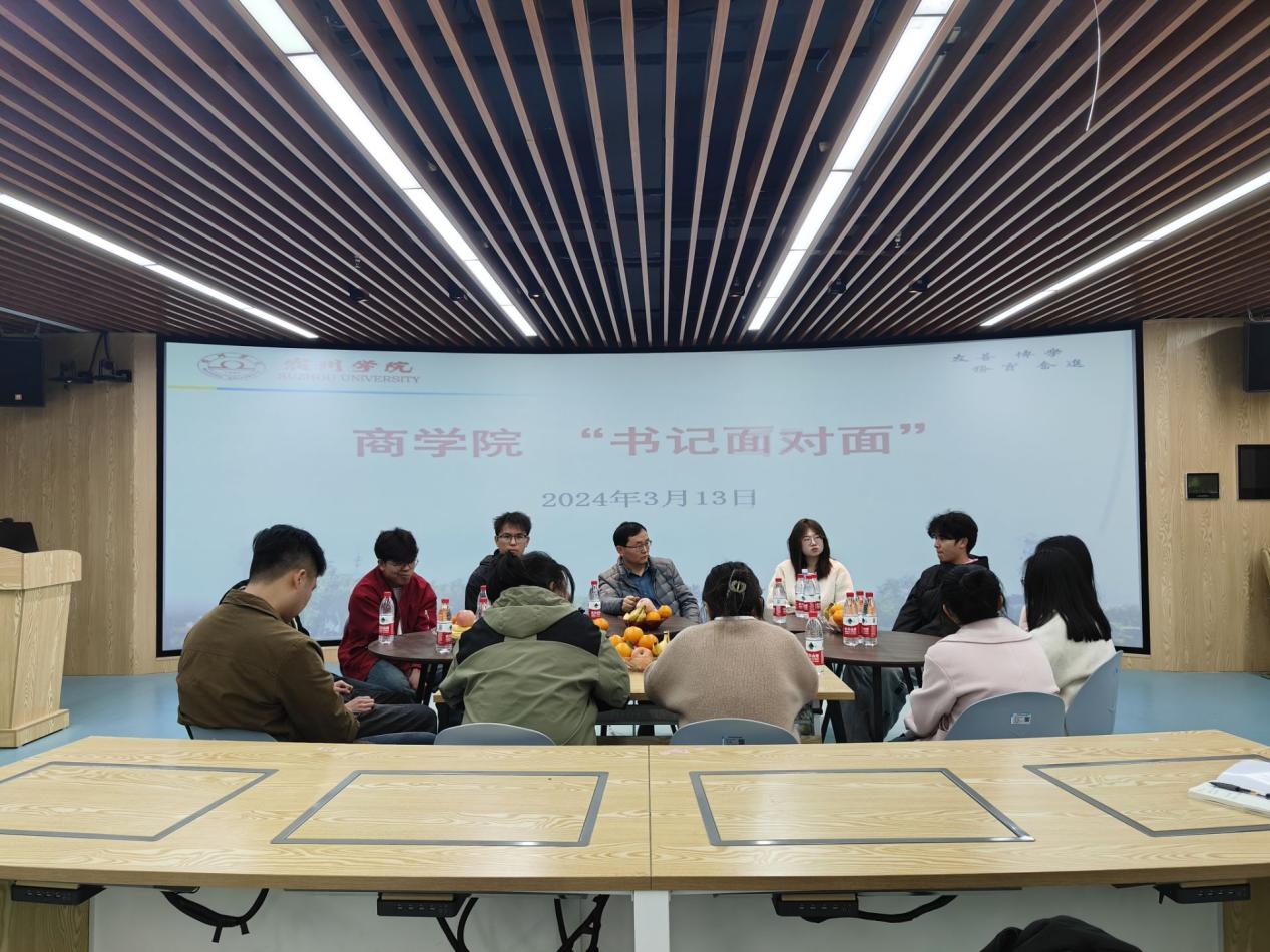 “书记面对面”主题活动作为商学院思政工作品牌,采取了活动前发布预告、学生自主报名参与的形式,会上互动交流充分、讨论主题广泛具体,有效增进了师生情感,强化了思想交流,增强了学生对学院的归属感,做到了“小切口”“大视角”,持续推进了学院“三全育人”工作开展。