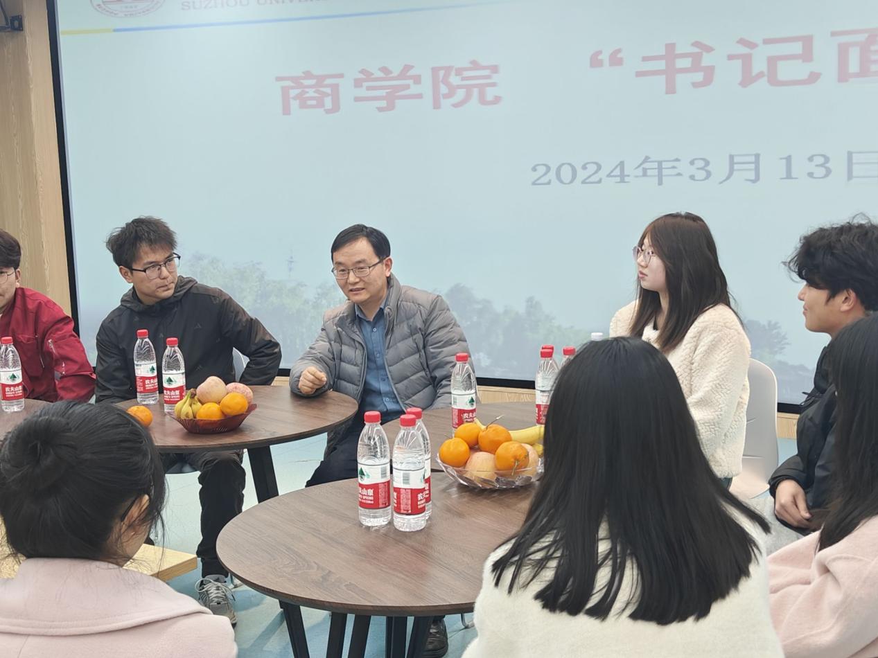 为深入学习贯彻习近平新时代中国特色社会主义思想,落实高校立德树人根本任务,3月13日下午,商学院在实训楼B215会议室开展了第七期“书记面对面”主题活动。活动由商学院党委书记肖良主持,2023级各班学生代表参加活动。