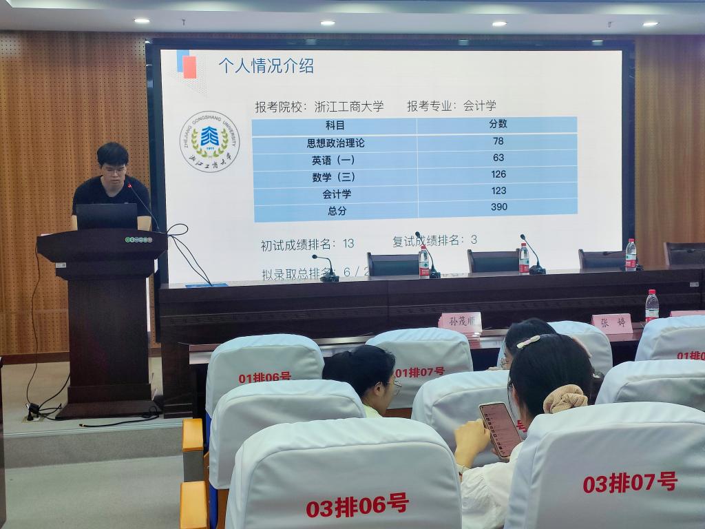 交流会开始,刘红军院长首先对近年来考研形势、学院考研情况作出介绍,同时强调了考研对于个人就业、未来发展具有重要的意义。学历提升不仅有助于提升个人知识素养、能力水平,同时个人未来发展空间更广阔。