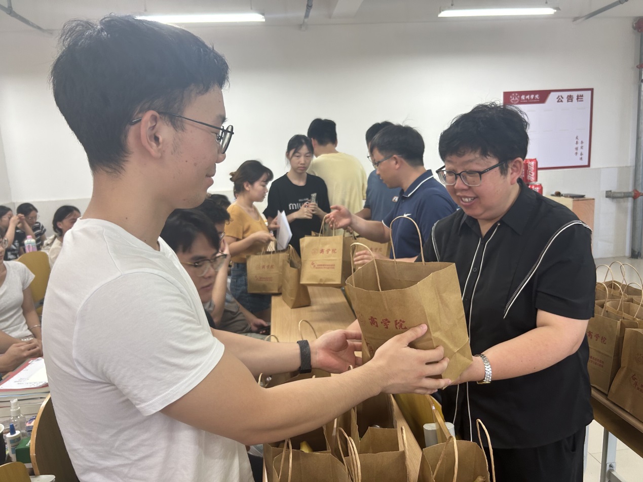 同学们也积极和领导老师交流,分享留校学习生活情况,畅谈成长和收获,也针对暑期自习室设置等提出了意见建议。院领导高度重视,针对同学们反馈的空调等问题及时协调学校后勤及有关部门,妥善解决学生学习生活中的实际困难。学院领导也提醒同学们注意夏季用电安全、交通安全、注意防范电信诈骗等,同时为同学们发放了学院精心准备的加油小礼品。