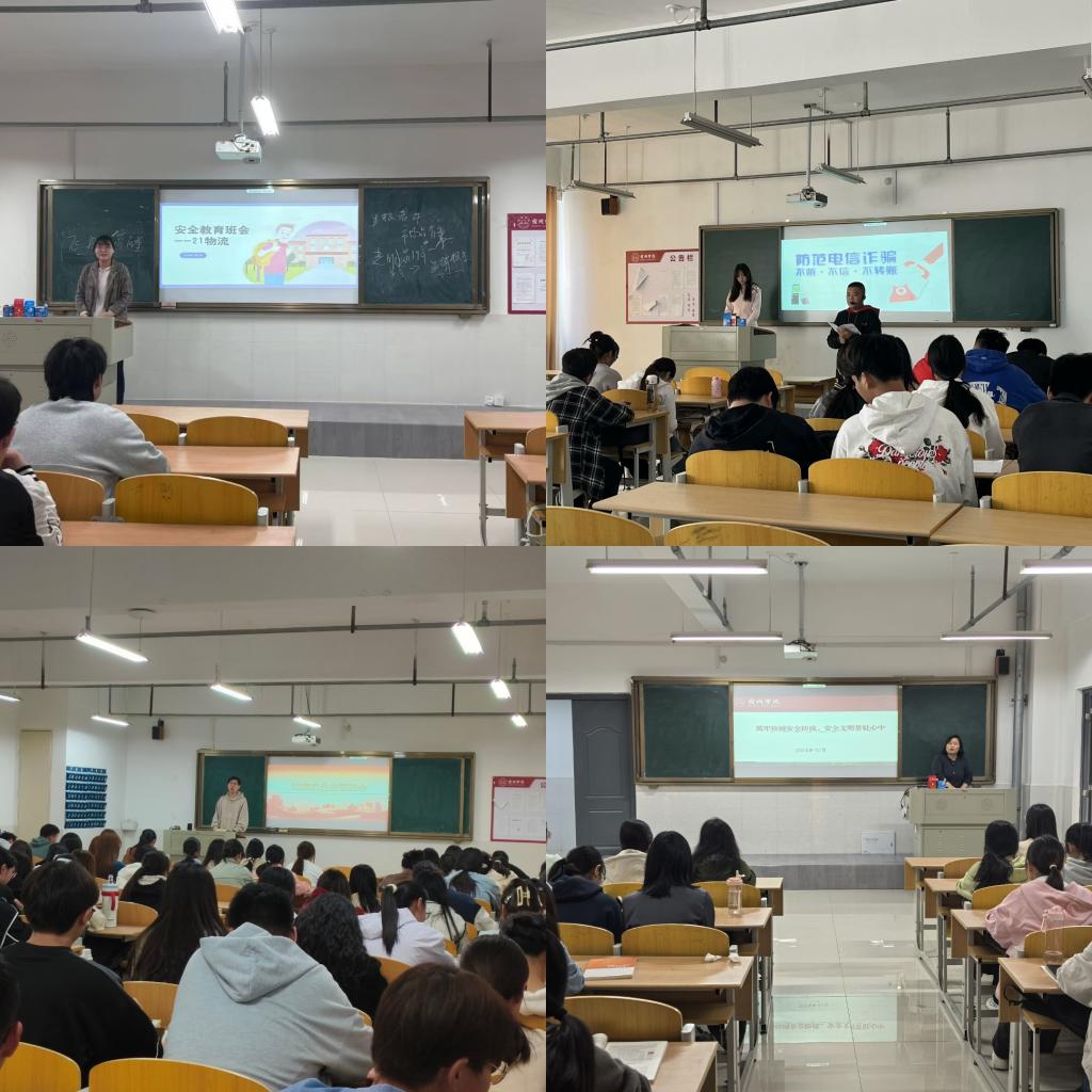 班会上,各班辅导员围绕国家安全、人身财产安全、网络安全、消防安全、交通安全、食品安全、宿舍安全等内容开展了安全教育,并重点加强了国家安全教育、预防电信诈骗教育、宿舍安全教育和大学生行为规范教育。各班尤其注重通过警示教育、案例分析、观看安全教育视频等丰富多样的形式做好安全教育工作。