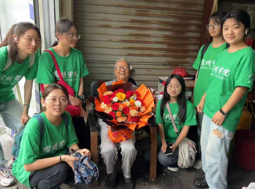 7月11日至15日,团队在濉溪县开展了为期5天的探访活动。其中一名是退役老军人,那名爷爷已年过八十,身体仍然健朗,为了表达敬意,团队成员带着鲜花和礼物,满怀敬意对爷爷进行探访。