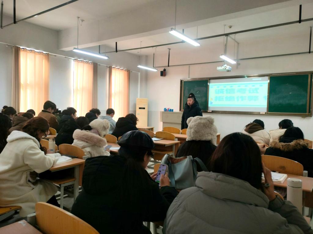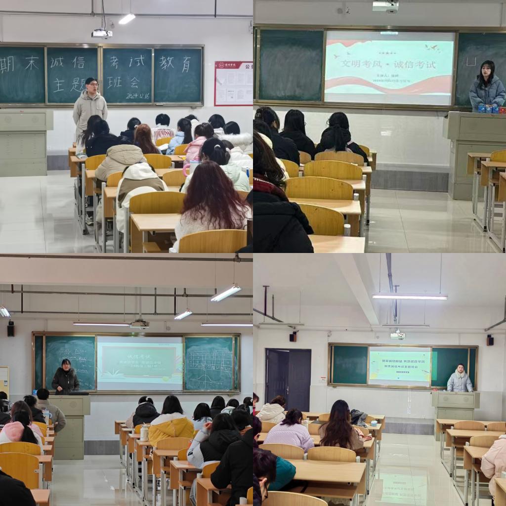 为进一步推动考风考纪建设,加强学生考试诚信教育,培育和树立良好的考风。12月16日-23日,商学院在实训楼B楼各教室召开2024-2025学年第一学期期末考试诚信教育主题班会,班会由各班辅导员主持,各年级专业学生参加了此次班会。