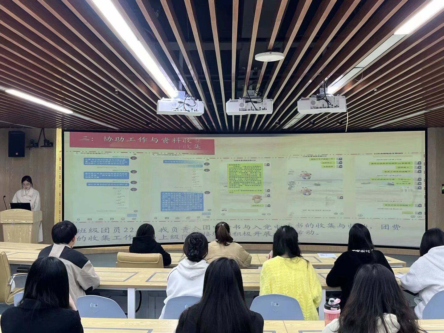 会上,各基层团支书依次上台,重点汇报组织建设、思想引领、主题团日活动开展及青年志愿服务等工作成果。团员发展、组织学习有序推进;团日活动多元吸聚人气;推优入党入团严谨规范;学风建设、团内制度、双创赛事、社会实践等工作亮点纷呈。