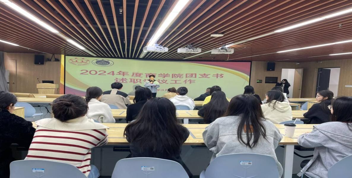 为深入学习宣传贯彻习近平新时代中国特色社会主义思想和党的二十大精神,着力提升学院共青团的组织力、引领力、服务力,3月12日下午,商学院开展2024年度团支部书记工作述职评议会,学院团委副书记曹超超、学生事务管理科副科长孙茂顺,各班级辅导员,学院团委学生干部及各基层团支部书记参加会议。