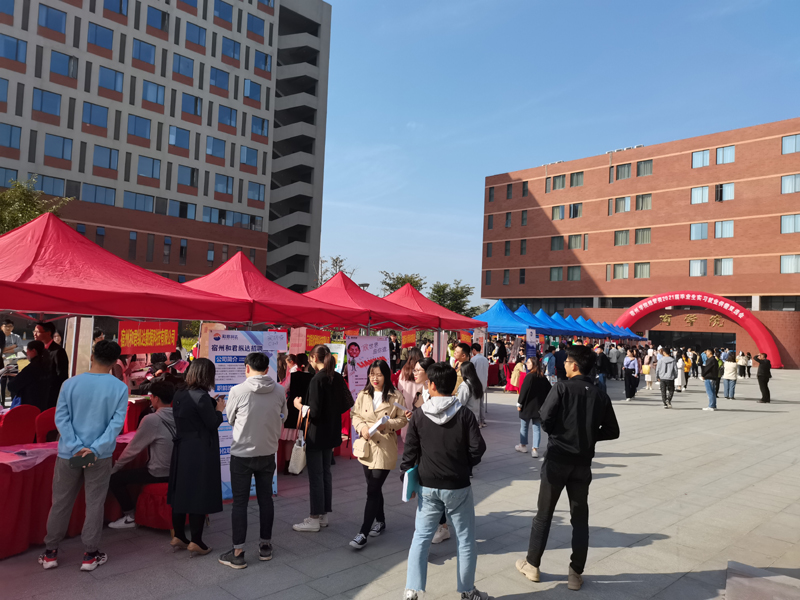 10月17日,实训楼前广场一片热闹非凡的景象,招就处、商学院共同举办的宿州学院经管类2021届毕业生供需双选会在紧张有序地进行着。
