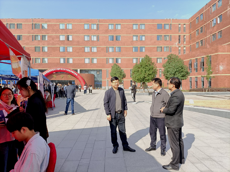 会议期间,商学院的联系领导校党委委员、纪委书记、监察专员王俊莅临双选会会场指导,招就处处长杨刚、商学院院长徐公伟、党总支书记岳尧、副书记周亚等领导到每家展位了解企业招聘情况,沟通校企合作事宜。