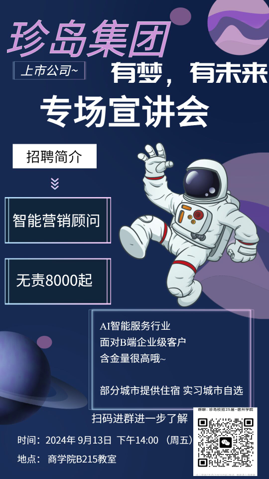 扫码进群,宣讲会后可现场面试,有问题可进群后添加群主〔珍岛校招moka〕询问沟通