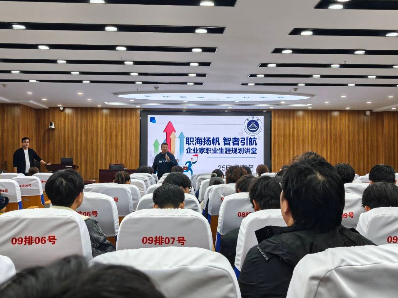为帮助学生搭建与企业精英面对面交流的平台,精准赋能未来职业发展,11月7日下午,商学院在实训楼B117报告厅举办“职海扬帆 智者引航”企业家职业生涯规划讲堂活动。商学院学生事务管理科科长孙茂顺和百余名2025级电子商务专业新生参加了活动。