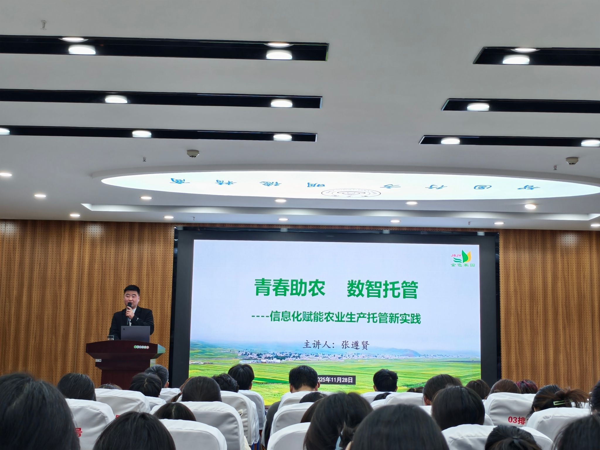 围绕“青春赋能”与“数智托管”两大核心主题,张遵贤分享了自身的创业历程与行业洞察,详细介绍了如何利用大数据、物联网、云计算等现代信息技术推进“土地全程托管”服务模式。他鼓励学弟学妹们将所学的商科知识与国家的乡村振兴战略相结合,用青春的智慧和活力为传统产业注入新动能。