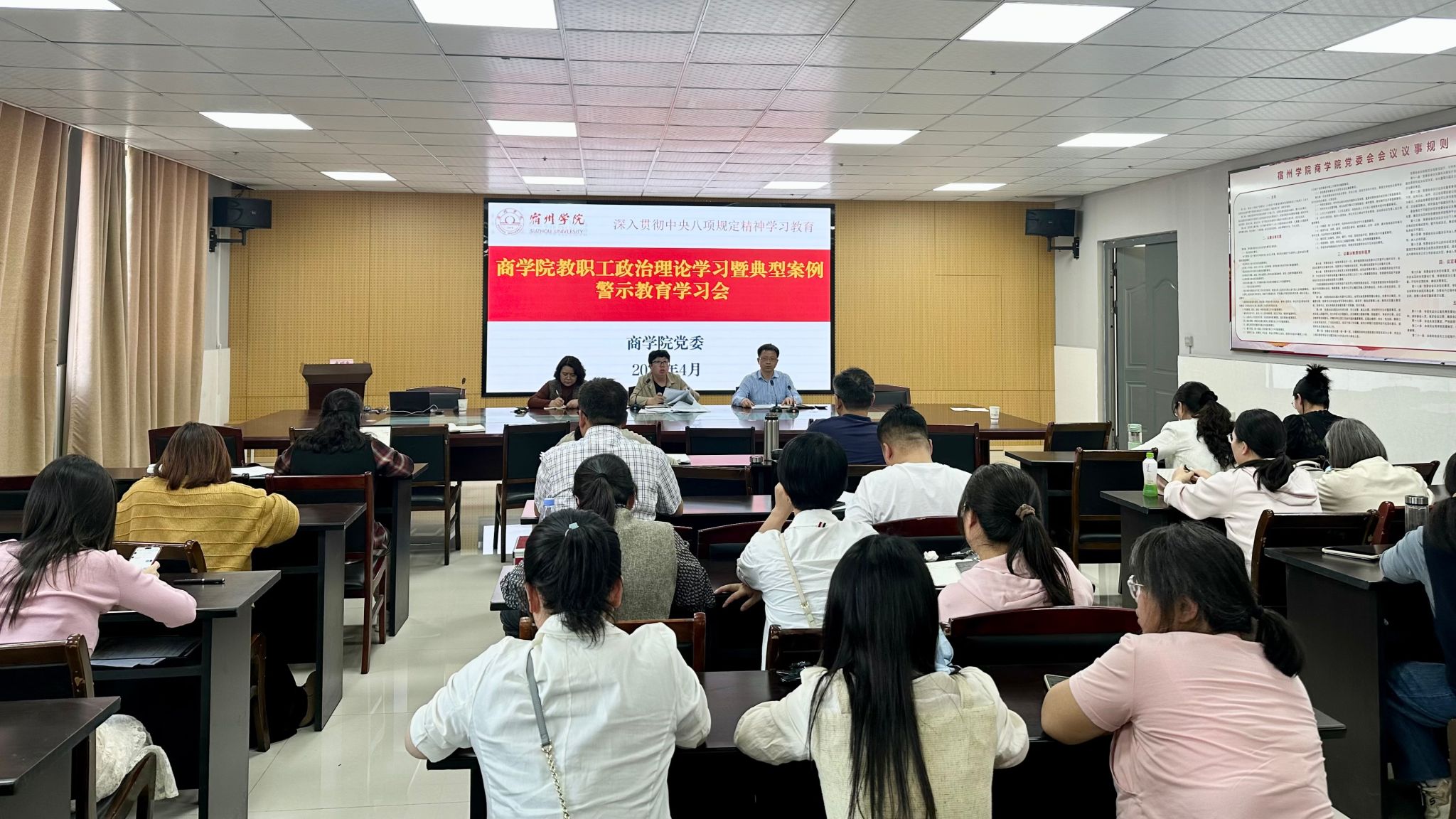 4月23下午,商学院在实训楼B517会议室召开教职工政治理论学习暨典型案例警示教育学习会。党委书记王淑霞主持会议,全体教职工参加会议。