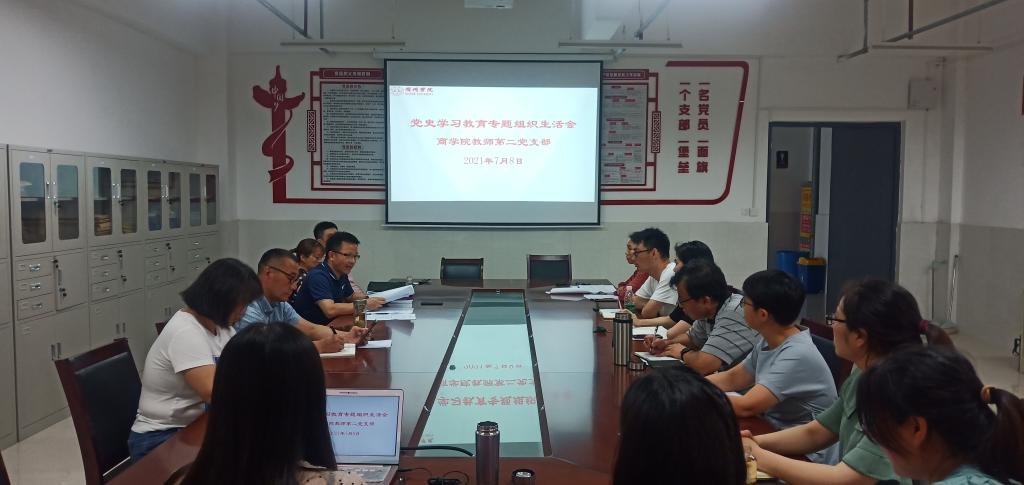 为贯彻落实《中共宿州学院委员会关于召开党史学习教育专题组织生活会的通知》文件精神,2021年7月8日下午,商学院教师第二党支部在实训楼B503会议室召开党史学习教育专题组织生活会,会议由支部书记刘红军主持。