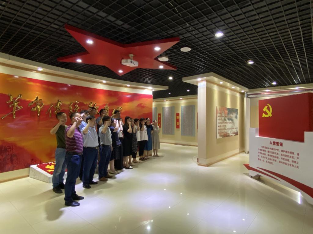 在党委副书记周亚的带领下,全体教师党员面对党旗,举起右手,庄严宣誓。