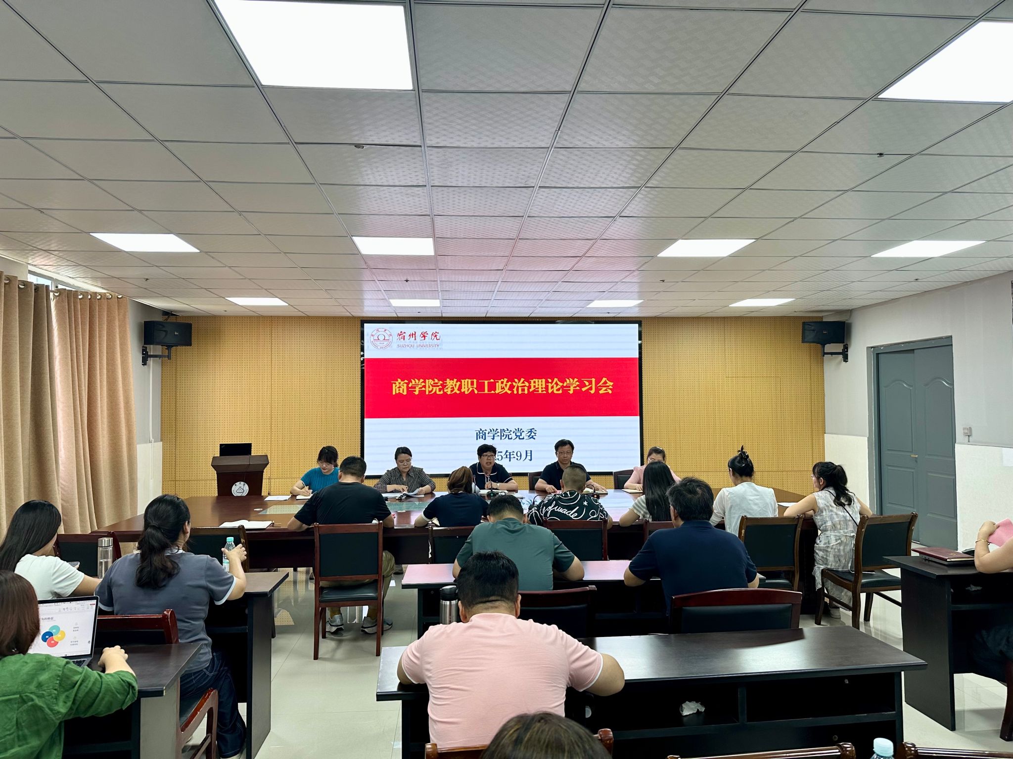 9月5日下午,商学院在实训楼B517召开教职工政治理论学习会,党委书记王淑霞主持会议,全体教职工参加会议。