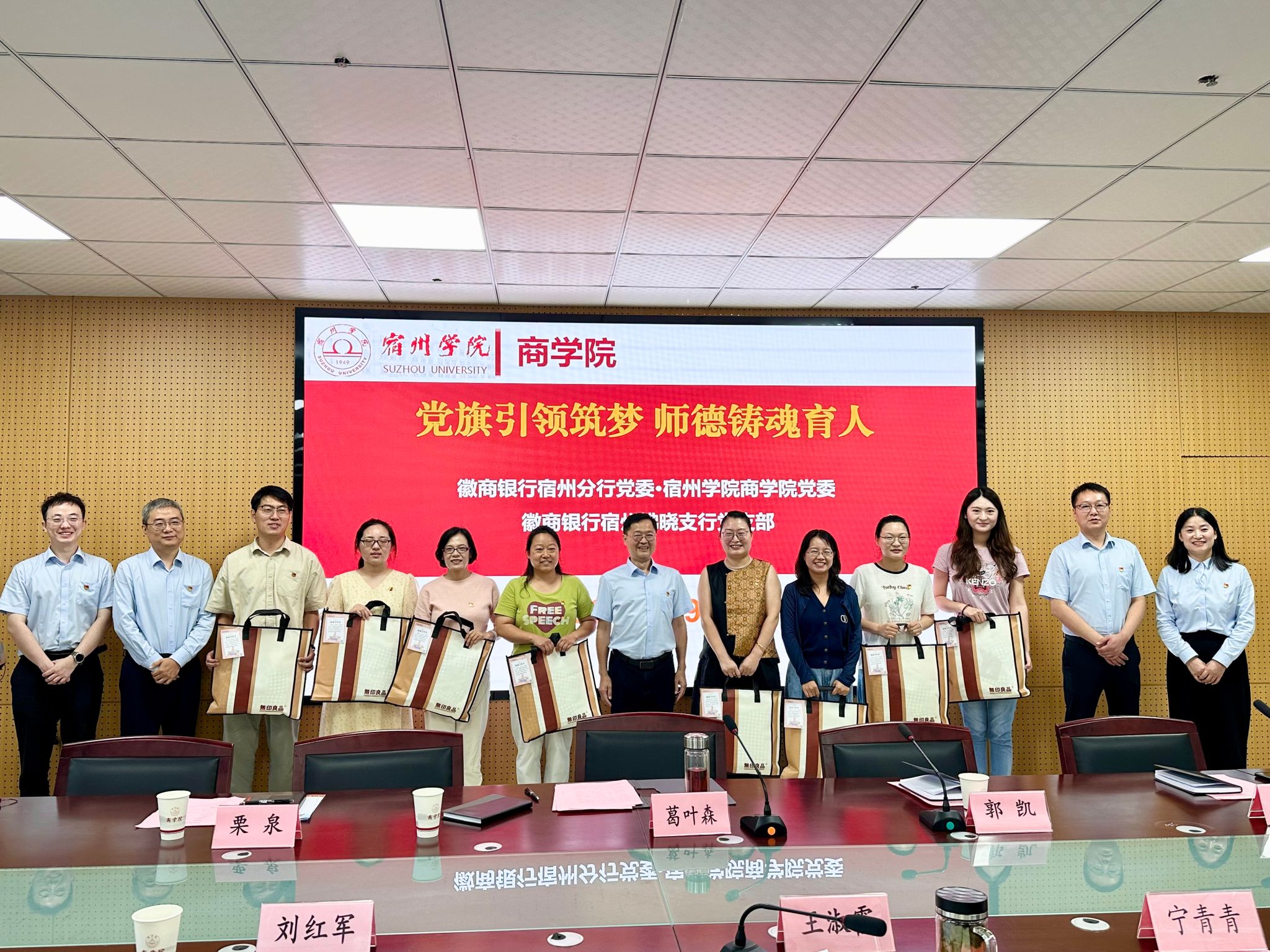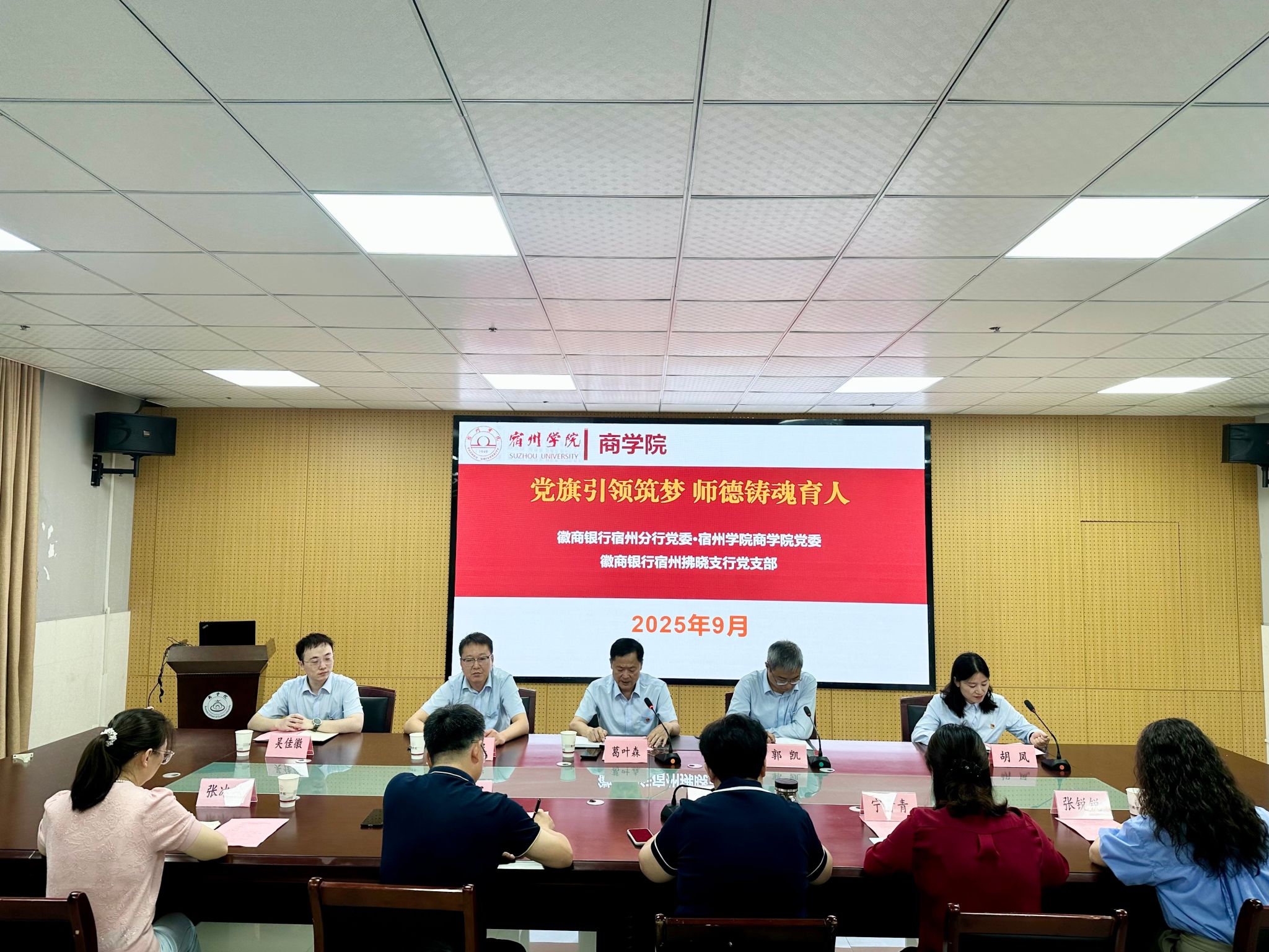 为凝聚高质量发展合力,强化银院合作纽带,实现资源共享、优势互补,9月11日上午,商学院党委与徽商银行宿州分行党委开展结对共建活动。徽商银行宿州分行党委副书记、副行长葛叶森及分行相关负责人、商学院党政班子成员、党支部书记、教师代表参加活动,活动由学院党委副书记、院长刘红军主持。
