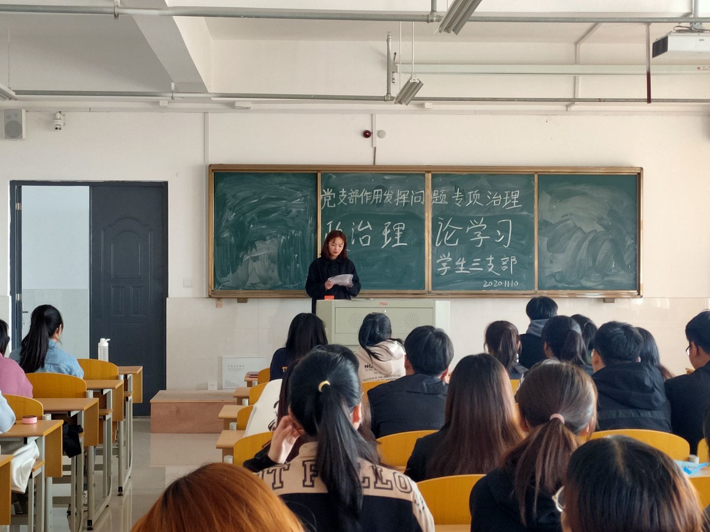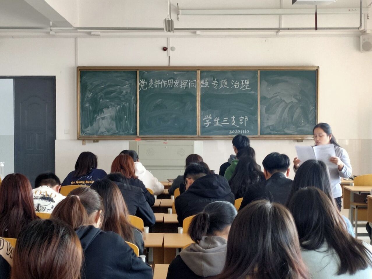 11月10日中午,商学院学生三支部在实训楼B楼312教室召开支部大会,大会由支部书记王艳主持,电子商务专业,国际经济与贸易专业学生党员和入党积极分子参加大会。