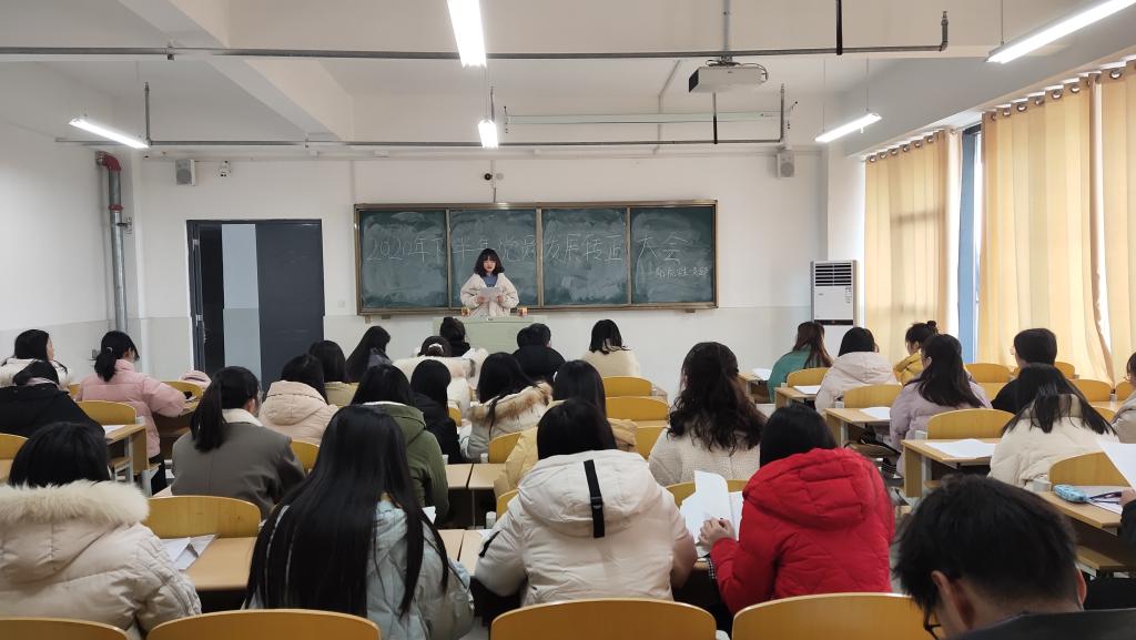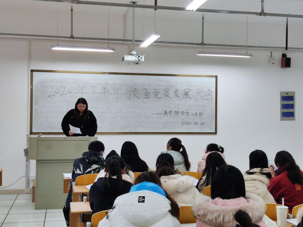 12月21日中午,商学院学生一、二、三、四党支部在实训楼B楼分别召开2020年下半年党员发展转正大会。商学院全体学生党员参加大会,大会由四位学生党支部书记分别主持。