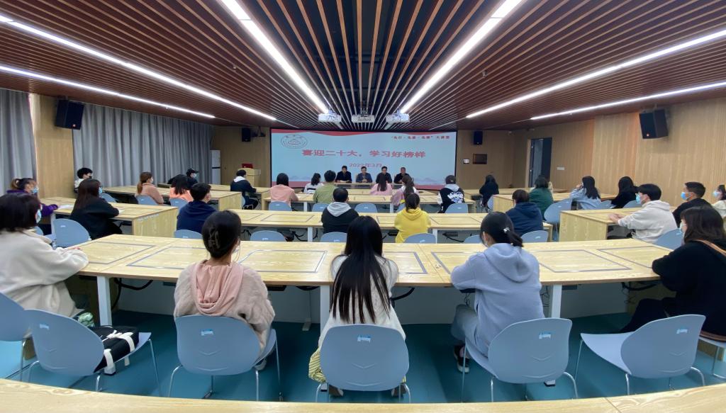 为进一步加强大学生思想政治教育,发挥先锋示范作用,营造良好学风,3月30日,商学院在实训楼B215报告厅以“喜迎二十大,学习好榜样”为主题举办第四期“先行·先进·先锋”大讲堂活动。院党委书记肖良做指导讲话,副院长(临时负责)刘红军、党委副书记周亚、组织员张锐锐、本批党员发展对象人选及部分班级干部共同参加了活动。活动由组织员黄凯主持。