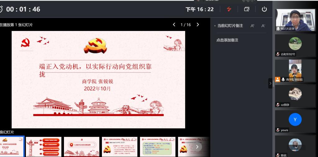 为提高新生的思想政治觉悟和政策理论水平,增进青年学生对党的了解,引导他们积极向党组织靠拢,10月12日下午,商学院举办了线上新生入党启蒙教育大会。