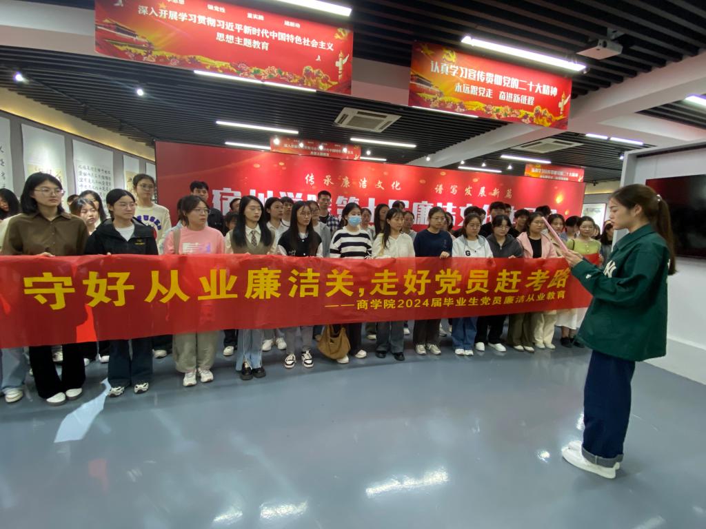 为持续深入学习贯彻习近平新时代中国特色社会主义思想,推动全面从严治党向纵深发展,教育引导毕业生党员在未来的学习、工作岗位上更好地发挥好党员先锋模范作用,10月25日下午,商学院积极开展“守好从业廉洁关,走好党员赶考路”2024届毕业生党员廉洁从业教育主题活动。