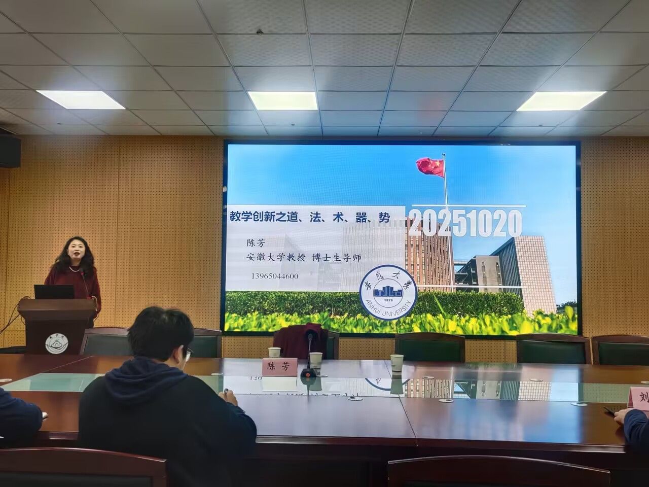 2025年10月20日下午,应商学院邀请,安徽大学经济学院陈芳教授到商学院作题为“教学创新之道、法、术、器、势”的专题报告。商学院党委书记王淑霞,副院长宁青青及学院青年教师聆听了报告,会议由学院党委副书记、院长刘红军主持。