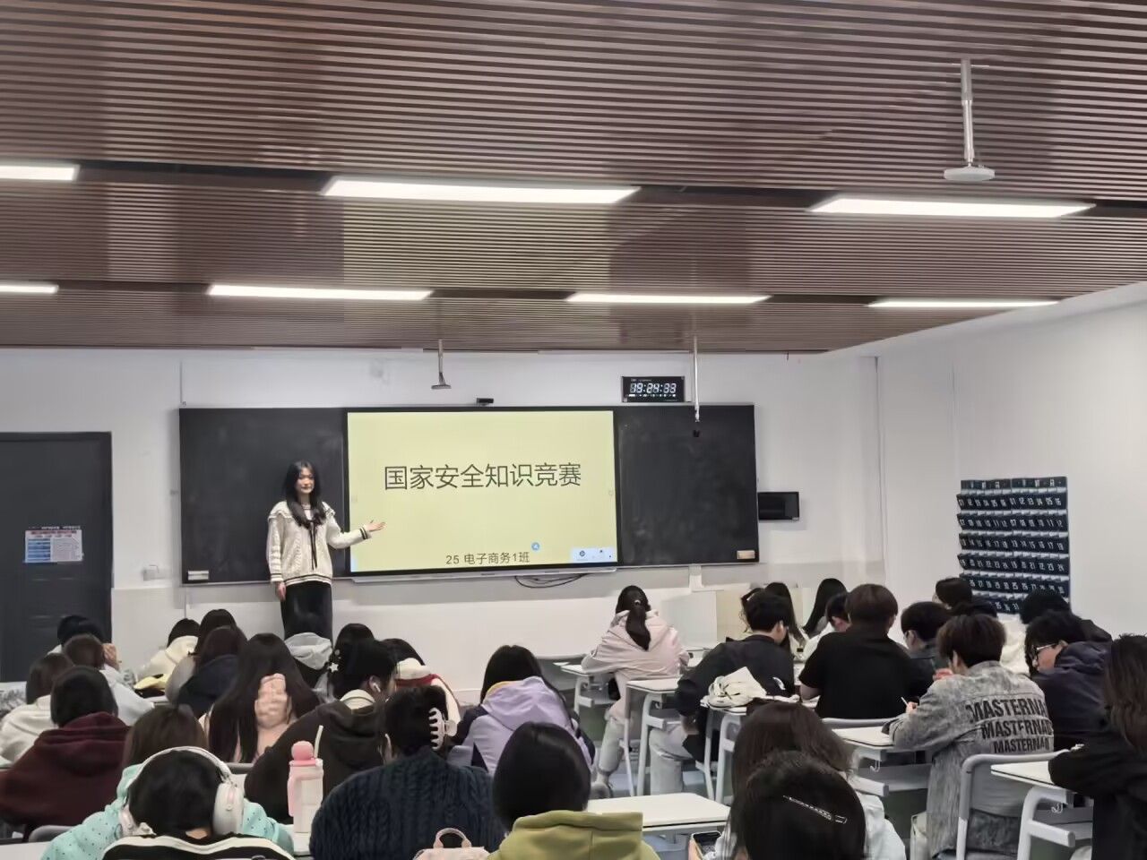 25电子商务1班举办了国家安全知识竞赛活动,竞赛题库涵盖国家安全相关法律条文、保密常识、反诈知识、校园安全、应急防护等内容。比赛环节紧凑有序,参赛同学沉着冷静、积极思考、踊跃作答,现场氛围热烈浓厚。