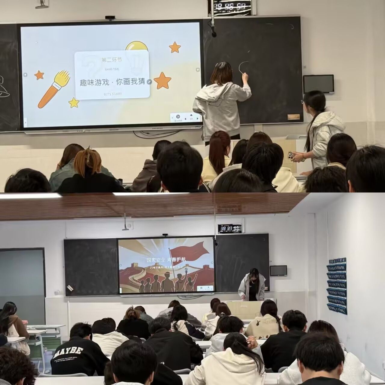 25电子商务2班开展了国家安全主题“你画我猜”趣味活动。活动中,同学们将抽象的安全知识转化为生动形象的画面,既考验了默契与联想能力,又加深了对国家安全知识的理解。